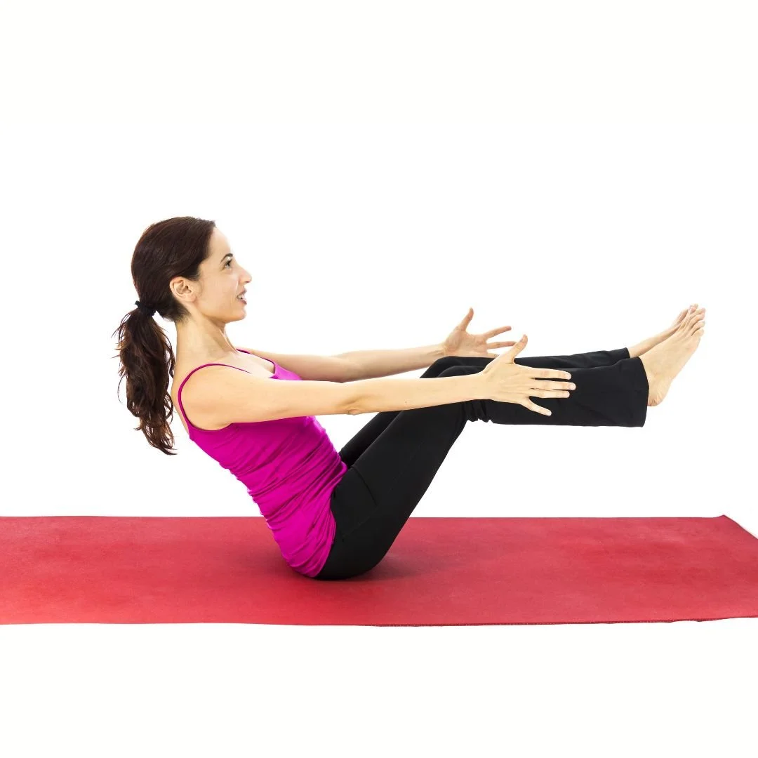 For context, here is a comparison of yoga's boat pose / navasana and the very similar move taught in Pilates called a teaser.
